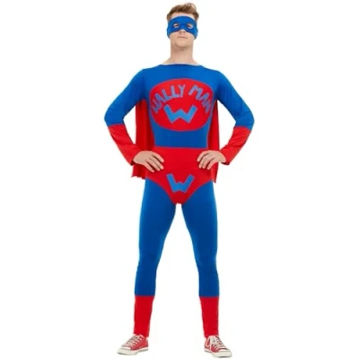 Includes Wallyman Costume, Blue & Red with Jumpsuit, Cape, Overpants & Eyemask Chest 34"-36" / Waist 28"-30" / Leg Inseam 31" Our dedicated in-house Safety team ensure that all of our products are manufactured and rigorously tested to comply with the latest EU and American Safety standards and regulations. Smiffys is a leading fancy dress supplier and family business with a 125 year heritage in costumes, wigs, make up and accessories. Please note that all our Smiffys products will always come in full Smiffys branded packaging., Manufacturer: Smiffys