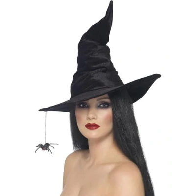 CLASSIC WITCH DESIGN – Pointed black velour witch hat with a curled peak and a dangling spider detail adds a spooky twist to any Halloween or fancy dress outfit. PERFECT FOR HALLOWEEN – A must-have accessory for Halloween parties, haunted house events, trick-or-treating, or spooky cosplay adventures. SOFT VELOUR MATERIAL – Made from soft, lightweight velour for a comfortable fit all night long; easy to wear with wigs or hair accessories. ONE SIZE FITS MOST – Designed to fit most adult head sizes; flexible and lightweight structure ensures comfort without slipping. TRUSTED BRAND – From Smiffys, a leading name in fancy dress and Halloween accessories, offering high-quality costume pieces for over 130 years., Manufacturer: Smiffy's