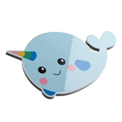 Perfect gift for Birthdays, Christmas or any other occasion Fun, bold design featuring a happy blue narwhal with a rainbow horn Crafted from thick acrylic, this strong magnet will be a fun and colourful addition to your fridge Dispatched with presentation card as shown Unique design created in Wales