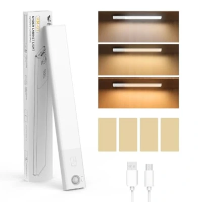 【Instant Motion & Light-Aware】Experience seamless lighting with a 0-second response that detects your motion from up to 10 feet away. Perfect for late-night trips, it only activates in the dark (16Lux) and turns off automatically, saving energy after you leave. 【Adjustable 3-Color Light with Smooth Stepless Dimming】 Switch effortlessly between 3000K warm, 4000K neutral, and 6000K cool light to match any environment or activity. The stepless dimming function lets you fine-tune brightness from 30% to 100% easily, creating the ideal lighting for cooking, reading, relaxing, or showcasing your wardrobe—luxury illumination tailored to your needs. 【True-to-Life Lighting】Built with 38 high-quality LEDs and a unique side-emitting design, this light delivers soft, evenly diffused illumination that reduces glare and eliminates harsh shadows—perfect for creating a comfortable, eye-friendly lighting environment.Its professional-quality lighting reveals authentic, vibrant colors—making meals look more appetizing, wardrobes more stylish, and interiors more inviting, all while providing a comfortable, eye-friendly lighting experience. 【Effortless Installation, Endless Possibilities】HM-01 is equipped with a slim 114g profile and crafted from eco-friendly ABS+PC+PVC, this light blends seamlessly into any space. The magnetic back with adhesive metal plate allows tool-free installation—stick, remove, and reposition anytime without damage. Perfect for under cabinets, wardrobes, hallways, staircases, or even RVs and workstations. 【Unbeatable Battery Life: Fast Charging, Weeks of Power】A robust 1200mAh battery fully recharges in just 1.7 hours. Enjoy up to 35 days of hands-free motion-sensing coverage or 8 hours of continuous light, all on a single charge. Spend less time charging and more time enjoying a perfectly lit space.