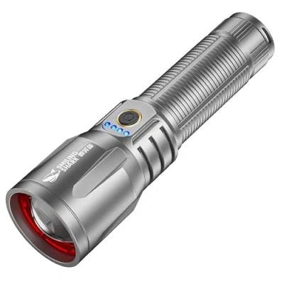 【Don't Hide Details Anywhere】Smiling Shark SD-7009 with the latest M80 wick, with 8000 lumens of brightness, these flashlights provide super bright and long-lasting light. 【Excellent Recharge/Powered】Our flashlights are the perfect choice for all your lighting needs. Whether for everyday use or outdoors, our flashlights offer excellent brightness and long battery life. 【3 Modes & Zoomable】3 light modes allow you to adapt your lighting to your needs. Choose between high, low or strobe modes to adjust the brightness to your liking. Adjustable focus allows you to zoom in for intense spot or zoom out for a wider beam. 【MADE FOR OUTDOORS】Our flashlights are sturdy and durable, with water and shock resistance features to ensure they can withstand any conditions. Many of our models are also compact and lightweight, so they can be easily stored in your pocket or backpack. 【Always Ready For Bad Weather】Thanks to the exquisite craftsmanship of the product, the light source of the wick and the waterproof properties of the product, you can be faced with fog, rain and other weather at any time.
