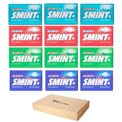 Smint Mix XXL 12 Packs offer a tantalizing assortment of flavors, including Strawberry, Spearmint, Peppermint, and Sweetmint, providing a diverse range of refreshing options for every palate. Each pack contains convenient 25g tins, ensuring you have an ample supply of fresh breath goodness wherever you go. Indulge in the crisp and invigorating taste of Spearmint, the classic coolness of Peppermint, the subtly sweet sensation of Strawberry, and the refreshing zing of Sweetmint. With these compact tins, you can effortlessly maintain fresh breath and enjoy a burst of flavor throughout the day, whether you're at work, traveling, or out and about. The portable size makes it easy to stash multiple packs in your bag, pocket, or car, so you always have your favorite Smint flavors on hand.