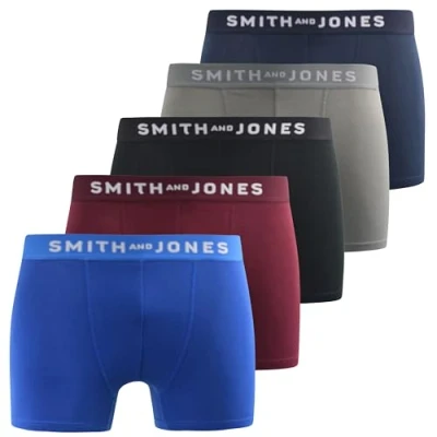 COMFORTABLE AND STYLISH – SMITH and JONES men’s boxer shorts are made from premium cotton blend, offering the ultimate comfort and breathability for all-day wear. With our multipack of boxer short trunks for men, you can choose from variety of stylish designs and colours to suit your needs and match your style. DURABLE AND EASY TO CARE FOR – Made from high-quality materials, our boxer briefs are built to last and withstand regular wear and washing, making them a smart and reliable choice for everyday underwear. SMITH & JONES underpants are easy to care for, so you can simply machine wash and wear them again and again. PERFECT FIT – Crafted to feel like a second skin, our boxer trunks offer both comfort and support, ensuring a chafing -free and discomfort-free experience. No annoying riding up or digging in – they fit perfectly. Made with premium jersey cotton fabric and a touch of elastane for the right amount of stretch, these boxershorts grant you the freedom of movement required for any activity. ULTIMATE VALUE FOR MONEY – Our boxers for men in multipack provide excellent value for money, allowing you to stock up on your favourite styles. Get high-quality cotton mens boxers without breaking the bank. Available in countless colour options; in sizes S to XXL. The choice is yours! VERSATILE FOR ANY OCCASION - Whether you are lounging at home, working out, running errands, hanging out with friends, or sleeping, SMITH and JONES mens boxers will keep you comfortable and give you freedom of movement, without compromising the style and quality! Don’t hesitate and ADD TO CART before they sell out!