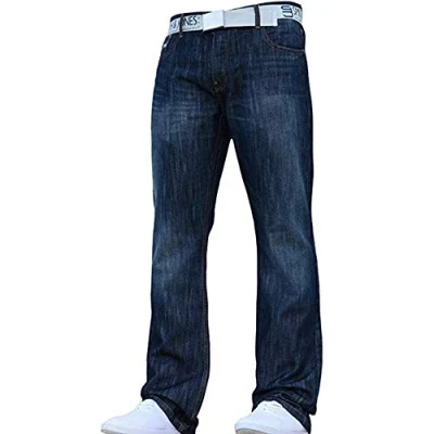 Smith & Jones Mens Furio Straignt Leg Jeans Dark Used Look W48 L32