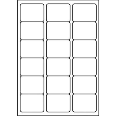 63.5 x 46.6mm, 18 labels per sheet, 20 sheets per pack, printable sticker paper Compatible with label template codes L7161 / J8161 Matt white with rounded corners and permanent adhesive Suitable with laser printers, inkjet printers, copiers, colour laser printers and colour copiers Multi-purpose printer labels, ideal for labelling in the home or office