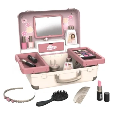 With the My Beauty Vanity, your child will have everything they need to take care of themselves and their friends! It is easy to carry and has 2 latches and 1 handle. 3 worlds are grouped in this suitcase: hairdressing, nails, makeup. The 13 included pretend accessories are perfect replicas and promise hours of play: 2 nail polishes, 2 lipsticks, 1 eyeshadow palette, 1 mascara, 1 brush, 1 comb, 1 headband, 1 ring, and various bottles. 1 real mirror and 1 secret trapdoor also make up the product. The retractable shelves allow for optimal space saving and additional storage. For ages 3 and up. Made in France. The makeup is fake., Manufacturer: Smoby