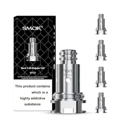 No Nicotine High-Quality 1.4 Ohm Regular Coil: Designed for smooth mouth-to-lung (MTL) vaping with rich flavor and moderate vapor production. Compatible with SMOK Nord Kits: Perfectly suited for the SMOK Nord 2 and other SMOK Nord devices for easy replacement. Ideal for Nic Salt and Regular E-Liquids: Delivers optimal flavor and performance when using regular e-liquids or nic salts. Long-Lasting & Consistent: Offers reliable and consistent vaping, with a 5-pack providing extended coil life and uninterrupted use.