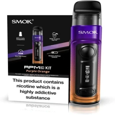 Smok RPM C Vape Starter Pod Kit 1650mAh Integrated Battery 50W Adjustable Airflow 2X 2 Coils No Nicotine (Purple Orange)