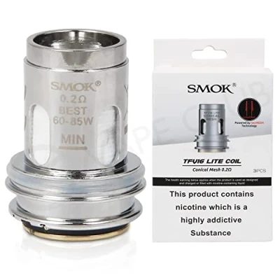The following warning only applies when the product is used with nicotine-containing e-liquid,this product contains-nicotine which is a highly addictive substance. Keep this product out of the reach of children. Size of cartridge (not exceeding 2ml) High Quality Mesh Coils, Deep & Rich Taste, Silky Smooth Vapor Production TFV16 Lite Conical Mesh Coil, 0.2ohm, Powerful & Warm Throat Hit, Best: 60-85W 3-Qty SMOK TFV16 Lite Coils Fits for Smok TFV16 Lite Tank Only