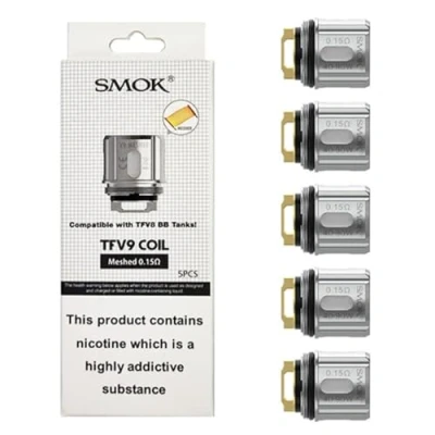 No Nicotine Fully cross-compatible with the popular TFV8 Baby Coils. Resistance 0.15 ohm Wattage 40-90W Used with Scar-mini Kit, TFV9 mini Tank, Rigel Kit, Scar-18 Kit, TFV9 Tank Rigel mini kit Pack of 5