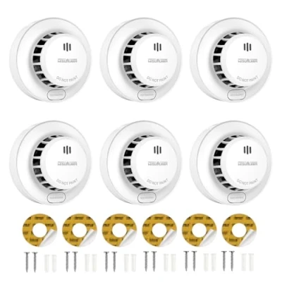 Smoke Alarm 10 Years Lifepan, 5 Battery, alarms for Home, with Replaceable Fire Test/Silence Button, Detector, 85dB, Conforms to EN14604, UKCA (6PCS)