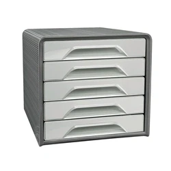 5 drawer unit for desktop use. Can hold documents and files up to 240x320mm in size. Made from 80% post-consumer recycled material. Made from high quality PS plastic. 100% recyclable. Smooth opening drawers. Stackable up to 2 units. Anti-skid pads.