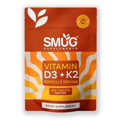 SMUG Supplements Vitamin D3 4000iu & K2 200ug (MK 7) 120 Vegetarian Tablets Supports Immune System Promotes Healthy Bones for Men and Women Made in Britain