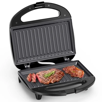 Snailar 2 Slice Sandwich Toaster with Grill Plates, Non Stick, PFOA Free, Cool Touch Handle, 750W, Black