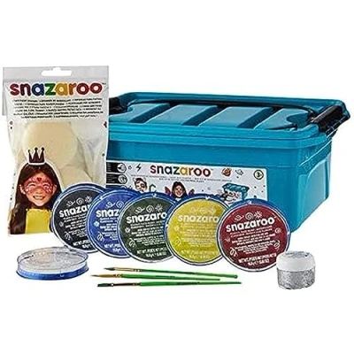 Snazaroo Beginner's Make Up Case, 6 Colours & Glitter Gel with 3 Brushes, 2 Sponges Book
