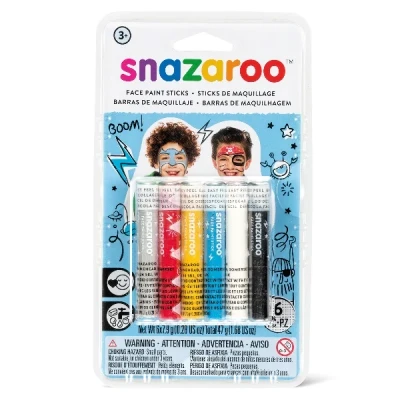 Get creative quickly with Snazaroo Face Painting Sticks—perfect for parties, playdates, and on-the-go fun. These convenient sticks offer mess-free application and vibrant color, making face painting fast, easy, and enjoyable.. Quick & Easy to Use: No brushes or water needed—just twist and apply directly to skin.. Vibrant, Long-Lasting Colours: Great for bold designs and imaginative creations.. Gentle on Skin: Hypoallergenic, non-toxic, and safe for sensitive skin.. Simple to Remove: Easily washes off with soap and water.. Perfect for kids' parties, school events, or creative play, Snazaroo Face Painting Sticks deliver safe, colourful fun wherever you are.