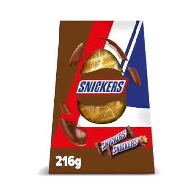 Indulgent Easter Treat: Enjoy the Snickers Extra Large Easter Egg, featuring a hollow milk chocolate egg and two 48g Snickers bars filled with rich caramel, roasted peanuts, soft nougat, and covered in smooth milk chocolate. Snickers Duo Delight: Love Snickers? You’re only human! This easter egg comes with two Snickers Caramel, Peanut, and Nougat Milk Chocolate Bars, offering a satisfying mix of crunchy, chewy, and sweet flavors. Ideal for Sharing: Go down in history as the hero who saved Easter, this Extra Large Snickers Easter egg is the perfect milk chocolate gift for the chocolate lover, add to an Easter hamper or share this Easter treat with friends and family. A Snickers hollow milk chocolate Easter egg and 2x 48g Snickers bars. Total weight 216g.