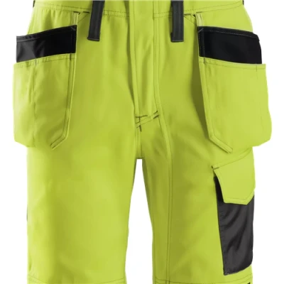 Brilliant one-piece trousers featuring an advanced cut with Twisted Leg™ design, superior knee protection and Cordura® reinforcements for extra durability. In addition, easy-access holster pockets for your essentials. EN 20471, Class 2.Advanced cut with Twisted Leg™ design that anticipates your next moveKneepad pockets are designed for the KneeGuard™ positioning system for superior knee protectionWide, adjustable shoulder straps with hook and loop fasteners and stretch fabric in the back for working comfort and freedom of movementHardwearing holster pockets and easy-access chest pockets including mobile phone compartment and plastic-covered ID badge holderSmart ruler pocket design with loose front corner for improved functionality and freedom of movementSizes: 44-64, 84-120, 146-162, 250-260Material: Main: 40% Cotton, 60% Polyester, 290 g/m².Contrast: 53% Cotton, 47% Polyester, 290 g/m².Reinforcement Knee: 100% CORDURA®-Polyamide, 205 g/m².Machine wash 60°C. Do not bleach. Do not tumble dry. Regular ironing, steam or dry, may be performed at Medium setting (150ºC, 300ºF). Dry cleaning solvents.Technical Specification:Colour: Yellow; Black Type: Trousers