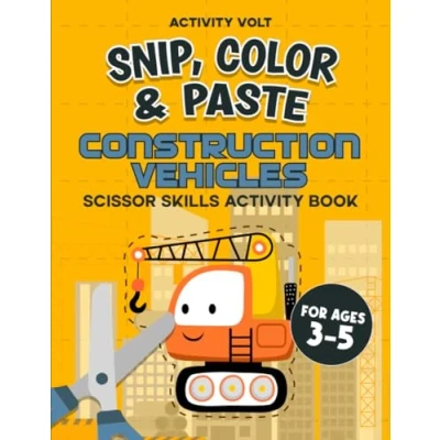 Snip, Color & Paste Construction Vehicles: Scissor Skills Workbook For Preschool Kids 3 5 Activity Book Practice Cutting Lines ... Cut (Scissor Fun 5)