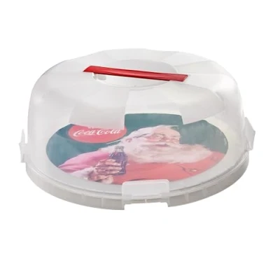 CAKE CARRIER: an ideal container for storing, transporting, and serving cakes of all kinds, up to 28 cm in diameter and 9 cm in height. It consists of a protective dome with an ergonomic handle and a tray with 4 safety locks. VINTAGE SANTA CLAUS DESIGN COCA-COLA: a cake holder with an extremely captivating tray design. The Coca-Cola graphics make it unique and easily recognizable, a true timeless style icon. MULTIPLE USES: a cake carrier with a transparent lid that ensures preservation, and the tray also allows for table service. RESISTANT TO HIGH AND LOW TEMPERATURES: a cake carrier with a lid that can also be used in the refrigerator and freezer, dishwasher-safe without concerns of shape distortion or color fading of the decorations. 100% MADE IN ITALY: Snips offers products with entirely Italian design, technology, and quality, made from a special, cutting-edge material.