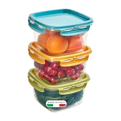 Snips, SnipsLock MIXCOLOR, Set of 3 Food Containers, x 1 LT, Square, 14.7 12 cm, Made in Italy