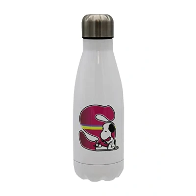 Snoopy Stainless Steel Water Bottle, Airtight Closure, with Letter S Design, Multi Colour, 550 ml, White, Official Product (CyP Brands)