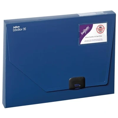 Made from heavy-gauge polypropylene and welded for extra strength ensures the Box File will withstand constant use and last for years Strong colour co-ordinated push-lock provides extra security, ensuring your contents are safe, even whilst on the move Business card holder on front cover and index spine holder are ideal for personalisation and easy identification of contents 35mm Dark Blue DocBox holds up to 350 sheets of paper, allowing you to store and organise loose documents Cutaway front allows you to easily access and retrieve your documents