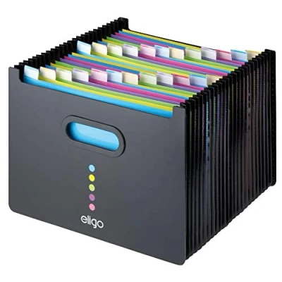 Elegant and sophisticated, free-standing expanding organiser ideal for desk and top shelf use , with 26 expanding sections providing you with an organised and efficient filing system Its’ landscape design accommodates up to A4 sized documents and files, allowing you to efficiently store and organise all your important documents Unique indexing system with colour-coded insert tabs ideal for quick and easy identification of contents Robust carry handles on either side are designed for easy transportation of documents – making travelling for work a hassle-free experience Manufactured from tough and durable 1.8mm thick polypropylene, the Eligo Desk Expander is designed to last