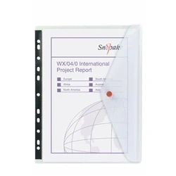 Polyfile wallet with reinforced multi-punched edge. Allows unpunched documents to be safely stored in ring binders and lever arch files. Press stud closure along the landscape edge. Capacity: 35 sheets of 80gsm A4 paper. Colour: Clear. Pack of 5.