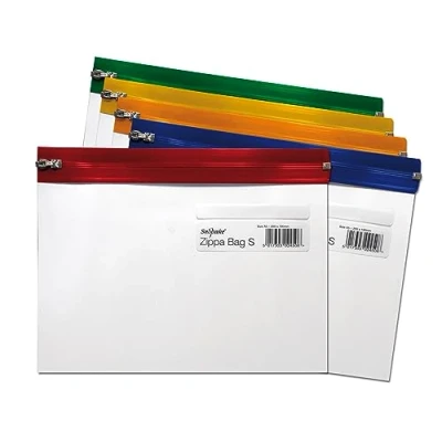 Ideal storage solution for frequent use, Snopakeâ€s Zippa-Bags are durable, stylish and resourceful - perfect for use in the home and on the go Zippa-Bags are ideal for storing items with awkward shapes, bulky items, wet or damp items like swimsuits, or products which need to be kept dry - accommodating all your storage needs Compact A5 size is also ideal for storing important travel documents like passports, tickets, money, insurance documents and other travel essentials - fitting snuggly into your bag and pocket for quick and easy access Features a handy write-on panel on the front, allowing you to personalize each bag, with different colour zip strips allowing you to categorise and identify contents with ease Smooth action long lasting metal zip pull on side allows you to easily access and retrieve content, whilst transparent and wipe-able material allows you to easily identify contents and protects them from dust and moisture Manufactured from tough, flexible and durable polyethylene, Snopake's Zippa-Bags are designed to withstand constant use and last for years