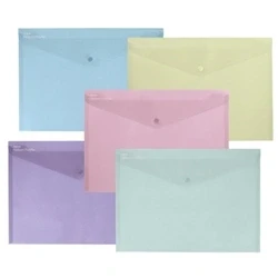 Durable 100% recycled polypropylene polyfile. Can hold up to 150 sheets of paper. Transparent superline finish allows easy identification of contents. Coordinated press-stud closure is engineered to last. 5 year guarantee. Size: A4. Pack of 5.
