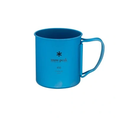 Snow Peak Titanium Single Walled Mug 450ml, Blue, Ultralight Japanese for Camping & Outdoors