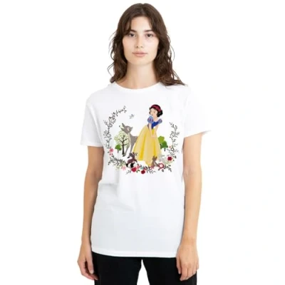 Snow White ladies t-shirt for women: crafted from ringspun cotton, the T-shirts are the epitome of timeless style; embrace your individuality with a look as distinct as you are; created for everyday wear, the tees feature a breathable all-season mid-weight weave, ensuring comfort in a versatile tagless design; beyond ordinary, the short-sleeve tee is built to last Versatile fit: whether you're an icon, influencer, or a myth in the making, discover a facet for every version of yourself; pre-shrunk for the optimum fit, the tees are meant to be worn daily; with a crew neckline, short sleeves, regular silhouette, and straight hemline, this top is designed for comfort; casual and classic, it's the optimum choice for any occasion; only good vibes here Licensed: discover style with the licensed pop culture designs; created by the in-house graphic art team, each piece is a proud representation of craftsmanship, meticulously designed and printed in the UK; showcase your favorite characters and themes, making every wear a statement of your unique style Effortless care: from school and work to hanging out with mates, the classic women's tee is tailored for the real world; no complicated care instructions, simply wear, wash, repeat; launder cold and tumble or hang dry to maintain the longevity of your new favourite shirt Optimum gifting option: adequate for sharing the love, the thoughtfully crafted and vividly rendered T-shirts are optimum for any superfan; kit your loved ones out for their next birthday, holiday, themed event, Christmas or special occasion