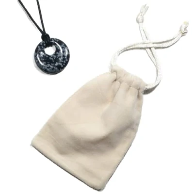 Snowflake Obsidian Donut Necklace & Velvet Pouch