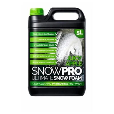 SnowPro’s super-thick snow foam gives you a quick and easy way to clean up your car. It’s a powerful pre-wash that creates a thick, clingy foam for increased contact time The powerful cleaning agents inside the foam quickly break down dirt and traffic film, allowing you to simply rinse most of it away Despite its extreme cleaning formula, SnowPro Ultimate Snow Foam is pH neutral. This means it’s suitable for use on any vehicle – even on cars with very sensitive paintwork It’s also safe on any part of your car, including diamond-cut alloys, lacquered wheels, wax seals, rubber, plastic trim, glass, and mirrors SnowPro's snow foam reduces the risk of your car becoming marked or scratched during the cleaning process, by safely lifting any grime and dirt that's found on your car's surface