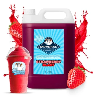 STRAWBERRY SLUSH SYRUP - Bursting with juicy, ripe strawberry flavour, this premium slush syrup creates a sweet & refreshing fruity slushie that stands out, delivering rich colour, bold berry taste & icy cold refreshment with a smooth frozen texture. 20+ SLUSH SYRUP FLAVOURS - Choose from over 20 flavours across our range including blue raspberry, cola, tiger blood, lemon & iron brew. Our slush syrup & slushie mix range suits slush machines, shaved ice, smoothies, mocktails & frozen cocktail recipes, with exciting new flavours always being added. USE IN ALL SLUSHY MACHINES - Designed for universal compatibility, this slush machine syrup works flawlessly in all commercial & home slushy machines. Trusted by thousands of UK venues for delivering a reliable freeze, smooth icy consistency & perfect slushies every time. PERFECT FOR KIDS PARTIES, HOME & TRADE - Ideal for kids parties, events, cafés, home use & busy venues, this versatile slushie mix also works brilliantly as a cocktail slush syrup for frozen drinks. Our slush syrup is easy to prepare, consistent in flavour & ideal for everything from family treats to high footfall service. LARGE 5L SLUSH MIX – LONG LASTING SLUSH SYRUP, MAKES UP TO 110 DRINKS - High yield 5 to 1 concentrate that provides excellent value, with each large 5 litre bottle producing up to 110 x 300 ml slushie or slushy servings. EASY TO USE - Simply dilute with water & pour into your slushie or slushy machine for quick, fuss free preparation. Our slush syrup keeps serving simple with no mess, no complication & smooth results every time. UK NUMBER 1 SLUSH SYRUP BRAND - With over 20 years of leading the slush industry, Snowshock is the UK’s top choice for slush syrup & slush machine syrup, trusted by thousands nationwide. Our vegan friendly brand is known for premium quality, 5 star Trustpilot service & lifetime expert support.