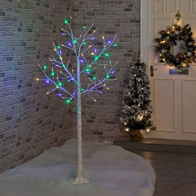 Snowtime 1.8m Birch Tree With 80 Multi Coloured LEDs