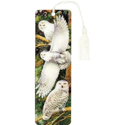 Owl keep your place! Let this trio of snowy owls be your reading companions. Lenticular design dazzles and delights with cool visual effects combining color and dimension. Design is complemented with a matching tassel. 3-D bookmark is packaged in a clear plastic sleeve. Bookmark measures 2-1/2'' wide x 7-1/8'' high.
