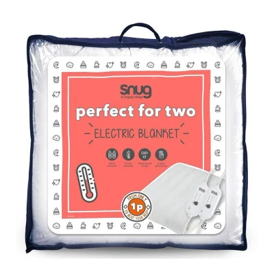 SNOOZY SNUGGLES: Get ready to snuggle up! Made for cosy comfort and warmth, the Snug Snuggle Up Dual Control Electric Blanket will keep you snug as a bug. PERFECT FOR TWO: Heating each half your bed up separately to keep temperature squabbles between you and your partner at bay. 3 heat settings on each control will leave you both spoilt for choice. GLOW IN THE DARK: With Snug you can each control your warmth even when the lights are out, with our handy glow in the dark controller button - genius! ENERGY SAVING HERO: Saving you pennies and keeping you snug, save on energy usage by sleeping in a warm bed, so back away from that thermostat! EASY FIT: Elasticated corner staps make fitting the product hassle free which leaves more time for snoozing.