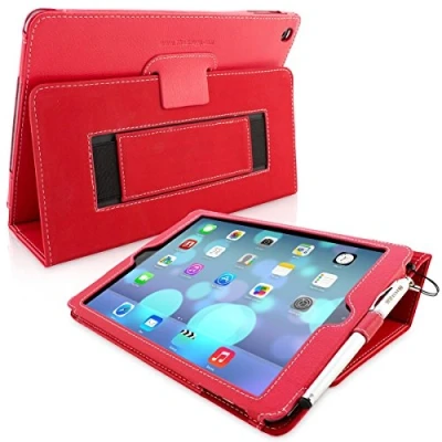 Snugg iPad Air (2014) and 9.7 (2018) Leather Case Cover Protective Flip Stand Red