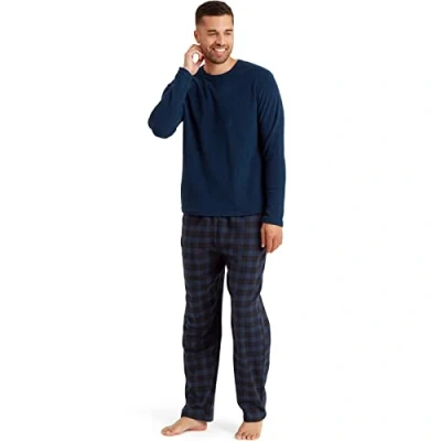 Bottom_Style : Pant Pyjama set featuring a long sleeve crew neck top and checked bottoms. A soft micro-fleece fabric top provides incredible comfort and warmth Brushed flannel pyjama bottoms feature an elasticated waist with an adjustable drawstring. Regular fit. 100% Poyester