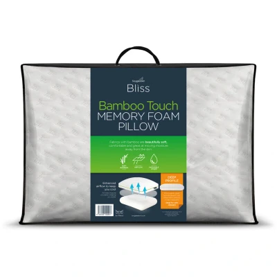 The bamboo blend cover on this Snuggledown Bliss Bamboo Touch Memory Foam Firm Support Pillow is beautifully soft, comfortable, and great at moving moisture away from the skin. Bamboo is naturally hypoallergenic, antibacterial and antifungal – a great choice for additional peace of mind. What's more, the cover is zipped, so you can take it off to be washed to keep it clean. With a new and improved soft formulation, this memory foam pillow features airholes which allow air to flow and reduces heat build-up. Memory foam naturally adjusts to the shape of your body. It reacts to the heat the body produces and follows the contours of your head and neck to ensure your spine is aligned as you sleep. This means you can relax into a great night's sleep with this Bliss Bamboo Touch Memory Foam Pillow from Snuggledown and wake up free from aches and pains. With a deep profile and firm support level, you will benefit greatly from this pillow if you’re a side sleeper, as this shape eases pressure