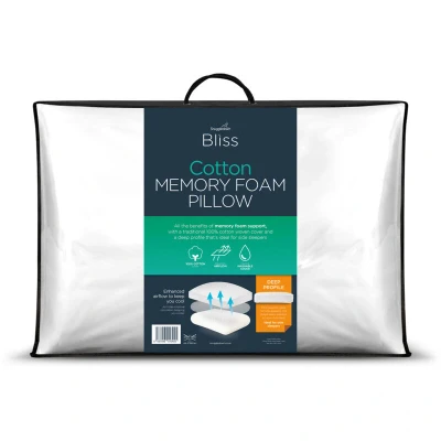 The cotton cover on this Snuggledown Bliss Cotton Memory Foam Firm Support Pillow is perfect for those who love the natural comfort of a traditional 100% cotton woven cover, with all the benefits of memory foam support. What's more, the cover is zipped, so you can take it off to be washed to keep it clean. With a new and improved soft formulation, this memory foam pillow features airholes which allow air to flow and reduces heat build-up. Memory foam naturally adjusts to the shape of your body. It reacts to the heat the body produces and follows the contours of your head and neck to ensure your spine is aligned as you sleep. This means you can relax into a great night's sleep with this Bliss Cotton Memory Foam Pillow from Snuggledown and wake up free from aches and pains. With a deep profile and firm support level, you will benefit greatly from this pillow if you’re a side sleeper, as this shape eases pressure on your shoulders and gently encourages correct spinal alignment and