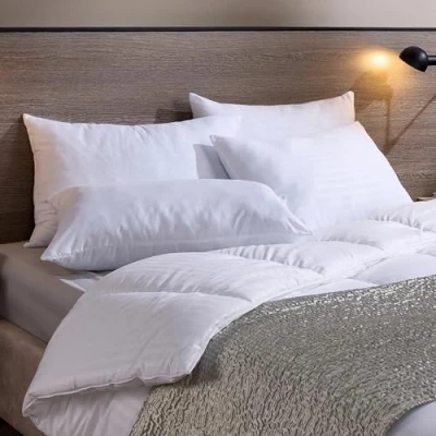 ESCAPE INTO LUXURY: Made to recreate the feel of 5-star hotel bedding, these Snuggledown hotel pillows are generously filled with premium hollowfibre for the perfect balance of soft comfort and gentle support - so every night feels like a luxury getaway. SATIN STRIPED FINISH: Featuring a silky-soft, embossed microfibre cover with elegant satin stripes, each bed pillow delivers breathable comfort. It has a premium touch that elevates your bedroom decor and feels as luxurious as it looks. 2-YEAR GUARANTEE: Sleep peacefully knowing that our luxury pillows has been crafted and hand finished in the UK. We are dedicated to delivering exceptional quality and ultimate comfort, backed by a thorough 2-year guarantee. BALANCED SUPPORT: Designed with a medium firmness that gently cradles your head and neck, these bed pillows help reduce tossing, turning, and morning stiffness - ideal for front, back, side and combination sleepers. BREATHE EASY: Filled with non-allergenic hollowfibre and wrapped in breathable fabric, these soft pillows helps reduce exposure to allergies and irritants - ideal for allergy sufferers seeking a cleaner, healthier night’s sleep.