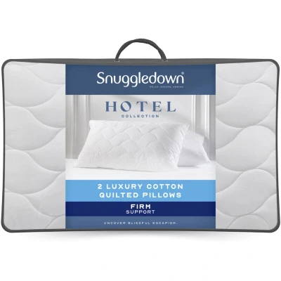 Snuggledown Luxury Cotton Quilted Pillows 2 Pack Hotel Quality UK Made Bouncy Back & Side Sleeper Pillow for Neck Shoulder Pain Relief Soft Comfortable, Non Allergenic, Washable (48 x 74cm)