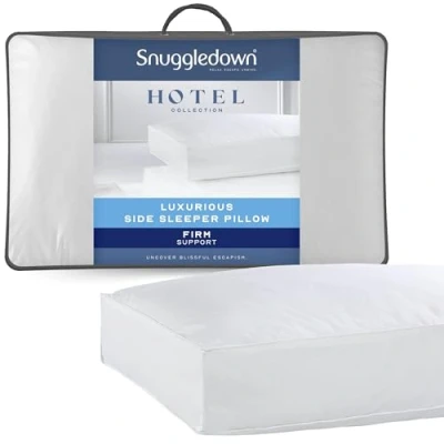 Snuggledown Side Sleeper Pillow 1 Pack Hotel Quality Firm Support Bed Pillows for Back Neck & Shoulder Pain Relief Soft Luxurious 100% Cotton Cover, Hypoallergenic, Made in the UK (64 x 38)