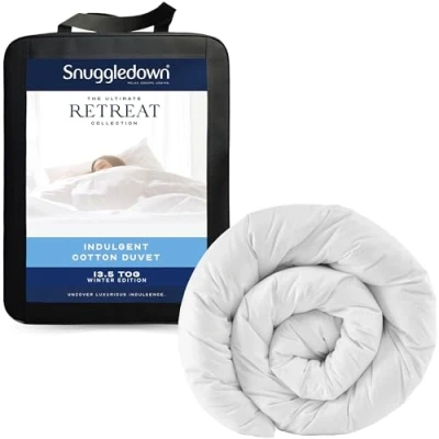 ManoManoSnuggledown Indulgent Cotton 13.5 Tog Winter Duvet is filled with the perfect blend of fine hollow and micro fibres, surrounded by a super fine 300 thread count cotton jacquard fabric. Beautifully light and lofty, the duvet wraps gently around you giving everything you need for a deep and blissful night’s sleep. A real touch of luxury you can feel. All our synthetic pillows and duvets are non allergenic, which means there's nothing in them that could cause allergic reactions. Which is great for peace of mind and essential of allergy sufferers. It’s machine washable at 40° and you can put it in the tumble dryer, plus its made in the UK. Packaging May Vary