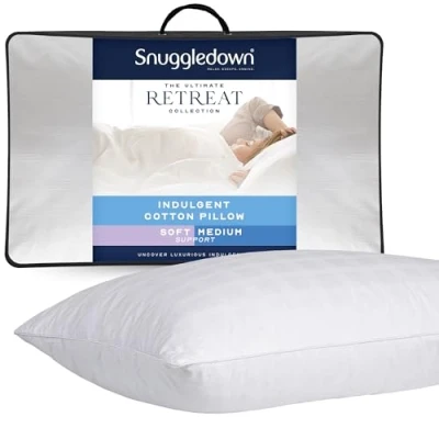 ManoManoThe Snuggledown Indulgent Cotton Soft Support Pillow is filled with the perfect blend of fine hollow and microfibres, surrounded by a super fine 300 thread count cotton jacquard fabric. Beautifully light and lofty, everything you need for a deep and blissful night’s sleep. A real touch of luxury you can feel. With 100 percent cotton jacquard 300 thread count cover and 100 percent polyester and microfibre blend fill, all of our synthetic pillows and duvets are non allergenic, which means there's nothing in them that could cause allergic reactions. Which is great for peace of mind and essential of allergy sufferers. Packaging May Vary