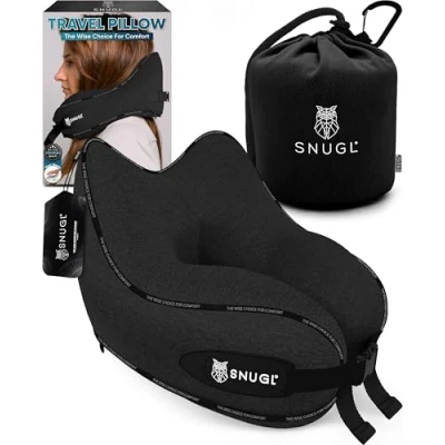 [ MULTI-PURPOSE COMFORT ON THE GO ] – More than just a neck pillow for travel, this versatile memory foam pillow doubles as a comfortable reading pillow and support cushion whether you’re on a plane, in a car, or relaxing at home. Designed as one of your must-have travel essentials, it belongs in every set of travel accessories, delivering consistent comfort no matter how or where you travel. [ TRAVEL GIFTS THEY’LL LOVE ] – Treat your loved ones this Christmas with our premium travel pillow for airplane journeys, one of this season’s most popular travel finds and a true favourite among holiday essentials. A thoughtful surprise under the tree or in a stocking, it’s an ideal choice for travel gifts for women and men who appreciate comfort wherever they go. [ DESIGNED FOR PRACTICALITY ] – We know the importance of an airplane pillow delivering the same support a cervical pillow does, especially during long journeys. That’s why our materials and design have been carefully selected and refined to ensure this is more than just a travel product. Use it as a reading cushion, take it along as a camping pillow, or rely on it as your trusted flight pillow – one of those practical memory foam pillows that quickly becomes part of your everyday routine. [ THE WISE CHOICE FOR COMFORT ] – A long flight without the right neck support pillow can leave you stiff and sore. Our travel neck cushion is crafted to deliver the same benefits as a high-quality orthopedic pillow, wherever your journey takes you. Engineered as both an ergonomic pillow and an alignment pillow, it offers reliable neck support throughout your trip. Pair with an eye mask and travel blanket for the ultimate first-class sleep experience! [ PAIN-FREE FLIGHTS ] – The unique shape of our travel neck pillow is designed to ease tension and neck strain by moulding to the contours of your neck and shoulders. This support pillow is ideal for anyone seeking a pillow for neck and shoulder pain relief. See why we are one of the best travel pillows for adults in the UK and enjoy consistent comfort on every plane ride. [ PREMIUM FEEL WITH DUAL ADJUSTABLE STRAPS ] – Unlike other travel neck pillows for adults, our neck cushion is made with premium VISCO-ELASTIC memory foam. This firm yet soft foam ensures shape retention whilst the 100% Elastic Cationic Fabric prevents excessive sweating during long haul flights. The dual adjustable buckle straps on the memory foam neck cushion allow you to find the perfect fit for your neck size. Our neck support pillows support adults neck sizes from 9" upwards. [ SMART AND EASY STORAGE ] – We know how important luggage space is when travelling. That is why the SNUGL neck cushion travel pillow is designed with convenience and portability in mind. You can roll up the neck pillow travel cushion to reduce its size up to 70%! Store it in your flight bag or attach it with the included carabiner clip.