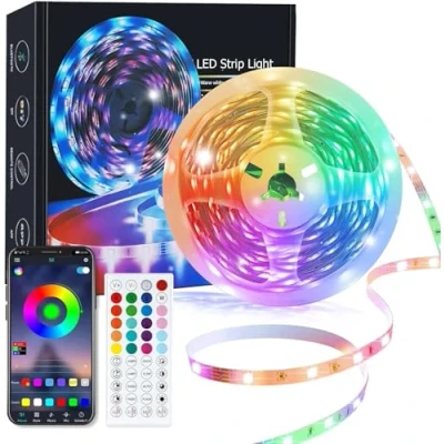 Dual Control: You can control the Led strip light via APP or remote control. Easily select colors, change modes, adjust brightness, smart timing. Led strip light offer 16 millions different colors and 29 dynamic modes, you can also DIY Led lights unique colors to light up your life. Led Lights with Music Sync: Led strip light with music sync function, built-in high sensitivity mic, Led lights Color Changing with the rhythm of the sound and music, with music to create a romantic, relaxed and cheerful party atmosphere, make your party up to the high peak. Smart Timer Function: The RGB Led strip lights can be used as Led lights alarm clock for bedroom, you can set the wake-up time and end time to turn it on/off automatically, your kids will love it. Let's enjoy the Led strip lights in smart way. Easy Install and Widely Use: Tear off strong adhesive tape on light strips, stick the strip lights on clean, dry surface, finish in minutes. Very suitable for Holiday event decoration like Christmas, Halloween, party, birthday, new year etc.(Pls test the product before installation) High-Quality: Led strip light use 5050 RGB beads allows the Led lights to be very colorful and durable, equipped with High-quality power adapters, which is more secure.